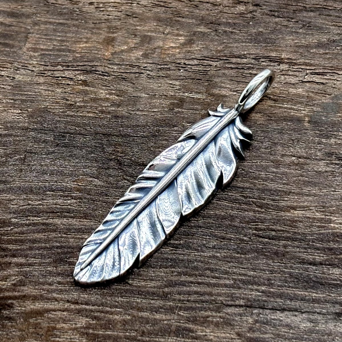 メンズのシルバー925製フェザーペンダントトップ。