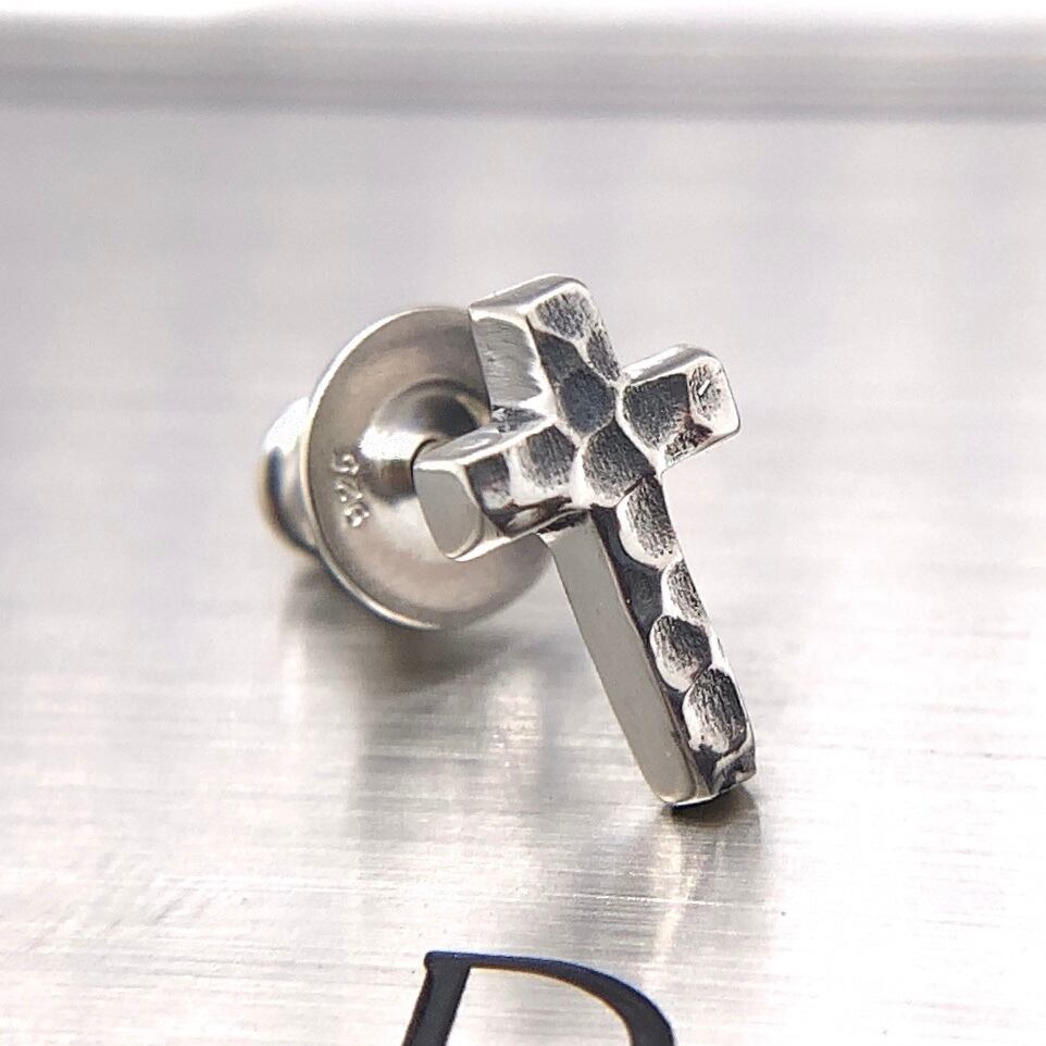 槌目 クロス メンズピアス/シルバー925 片耳用/セカンドピアス つけっぱなし/男性へのプレゼント/snd115