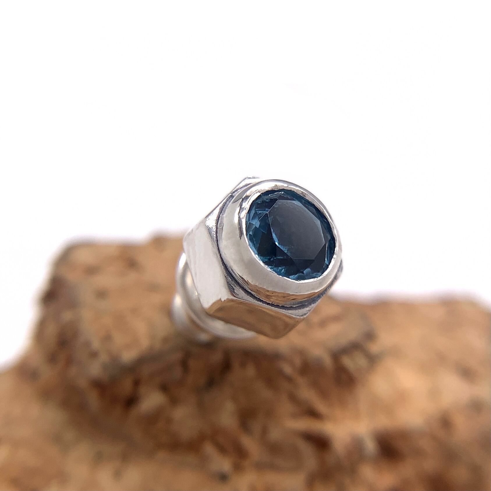 【男性へのプレゼント】ナット メンズピアス ブルートパーズ/シルバー925 片耳用/セカンドピアス つけっぱなし/シンプル アクセサリー/ミニマル/夫 旦那 彼氏 誕生日プレゼント/成人式/かっこいい カッコいい/ごつい